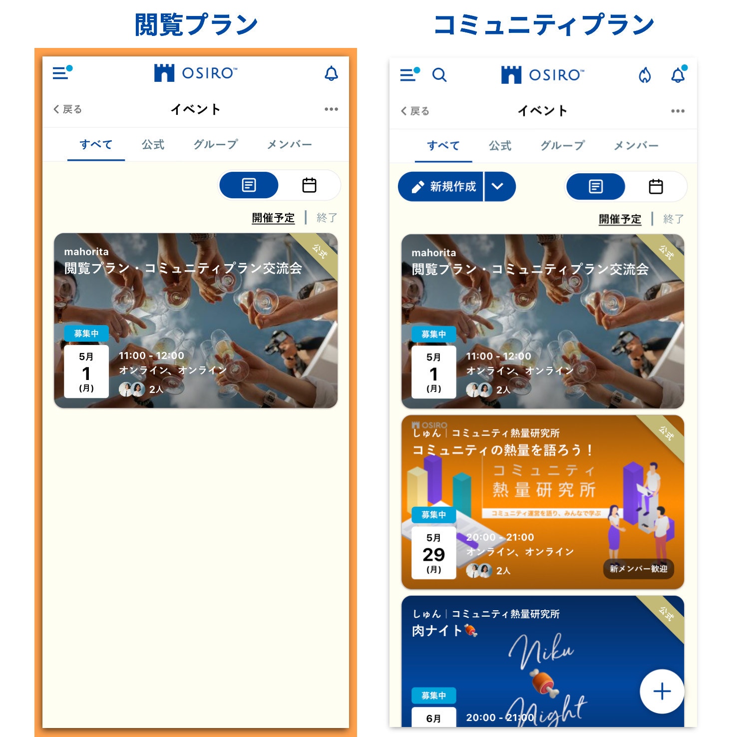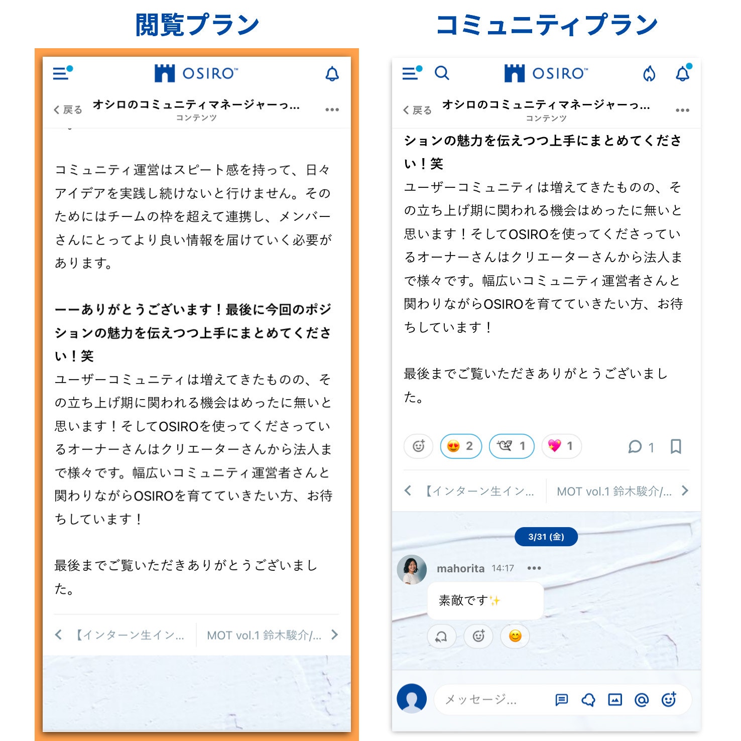 閲覧プランと、通常のコミュニティプランでは以下の違いがあります!