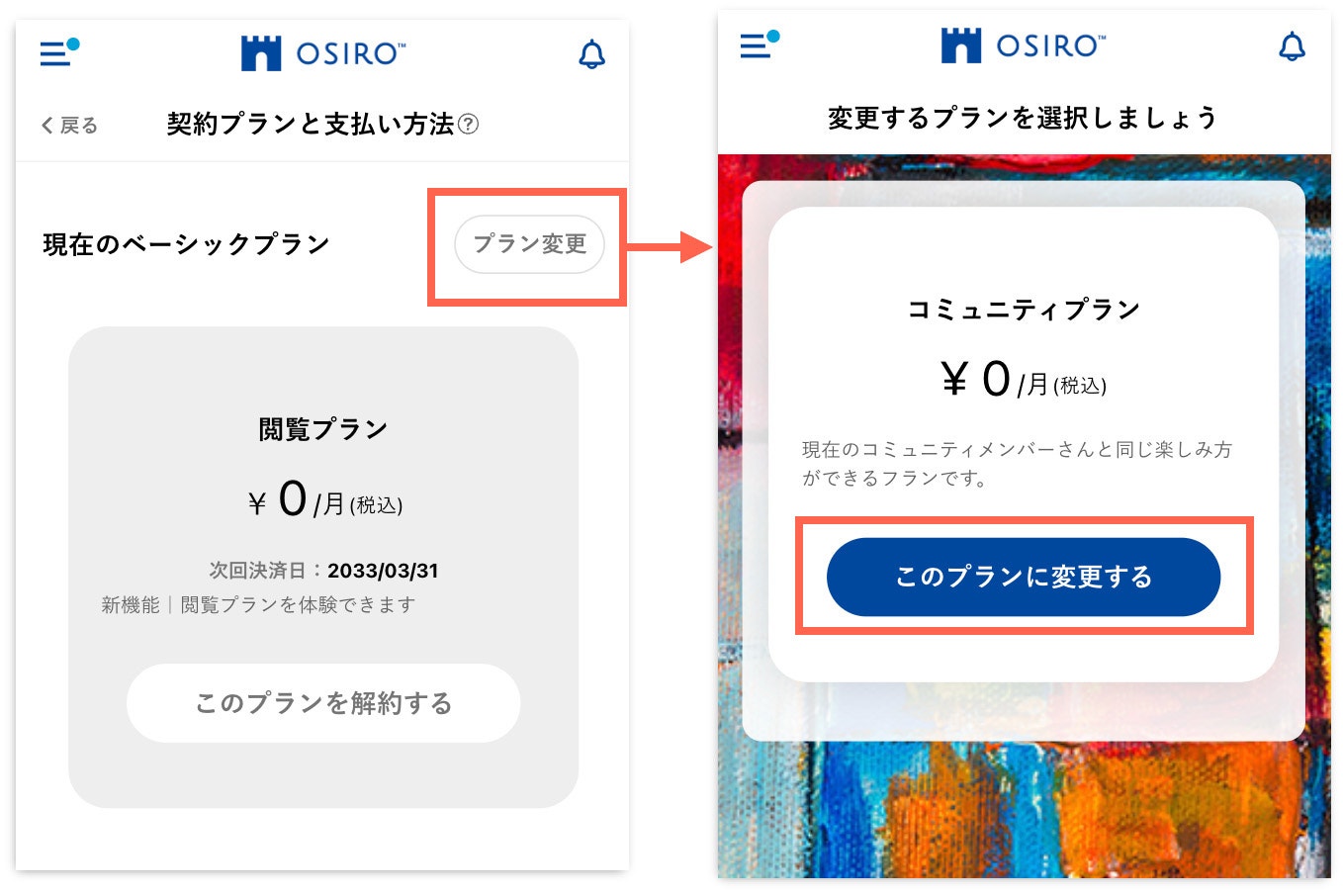 【設定 > 契約プランと支払い方法 > プラン変更 >このプランに変更する】